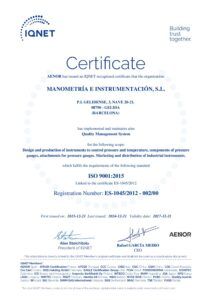 Notre expérience ainsi que le certificat du système de gestion de la qualité accrédité par AENOR, selon ISO 9001: 2015, garantissent la qualité et le service de nos produits.